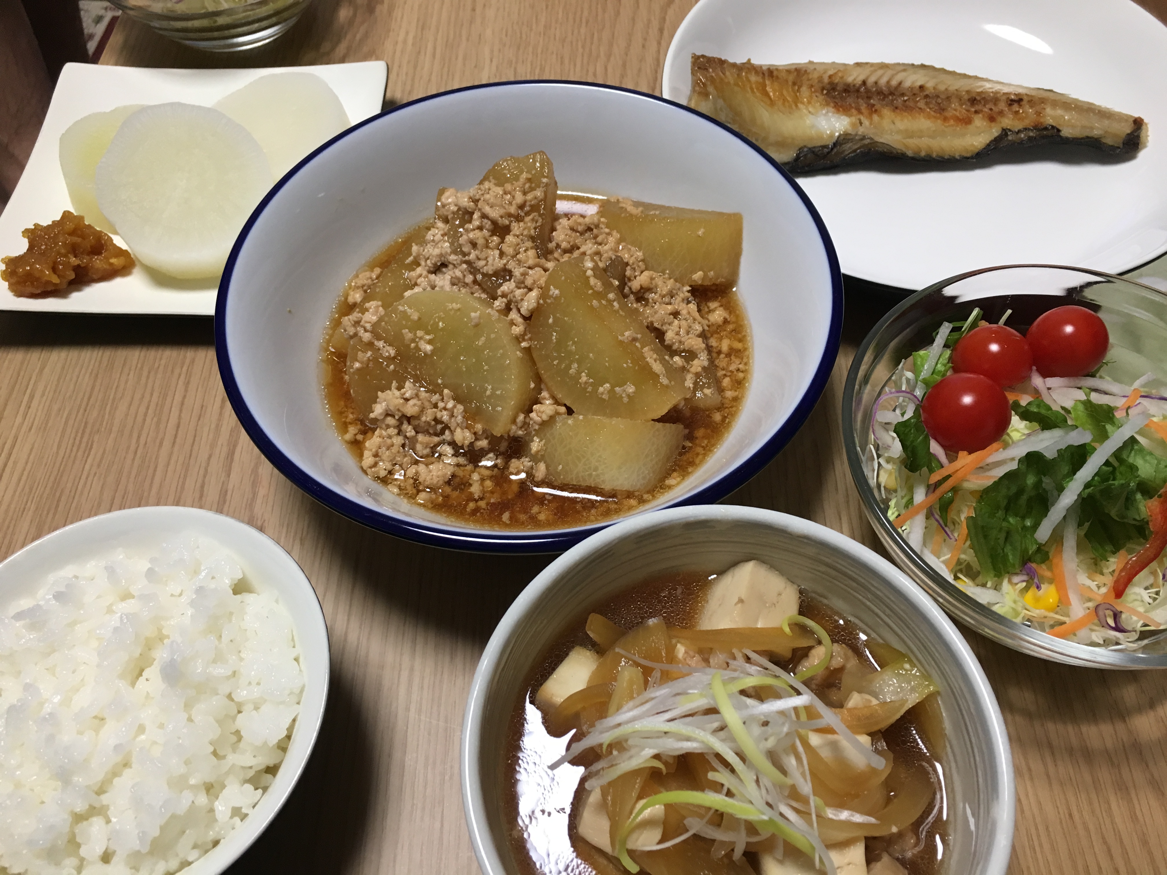 冬至の日に、近所の方から手作りのゆず味噌を頂いたので、今日は和食中心の献立にしました。