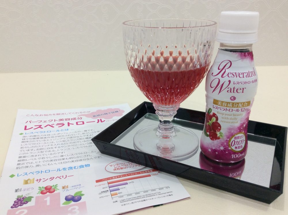レスベラトロールは、強い抗酸化力を持ったポリフェノールの一種で、最近いろいろなところで目にします。一番多いものは錠剤のサプリメントですが、最近こんなもの見つけ、医院にもおいてもらうことになりました。