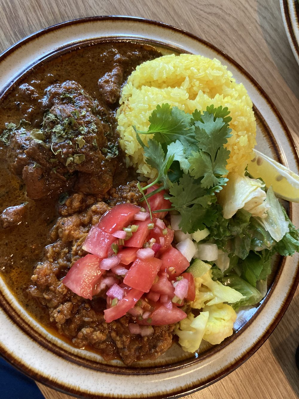 3種類から私はキーマカレーとチキンカレーのあいがけにしました✨